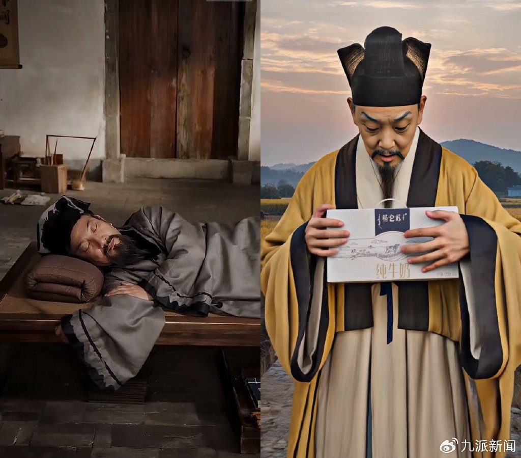 原本在互联网大厂从事产品运营工作的AI小宝也察觉到机会,7月份,她开始在“AI小宝”账号发布AI历史人物视频,一支苏轼《承天寺夜游》短剧视频在抖音的点赞量高达34.7万,立即接到了特仑苏的商务广告。